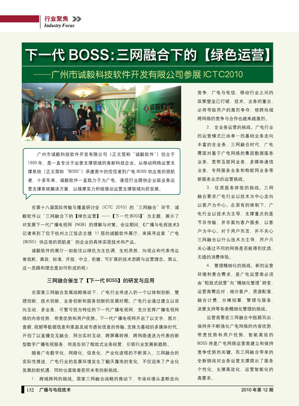 下一代BOSS:三網(wǎng)融合下的【綠色運營】——ICTC2010《廣播與電視技術(shù)》采訪誠毅軟件