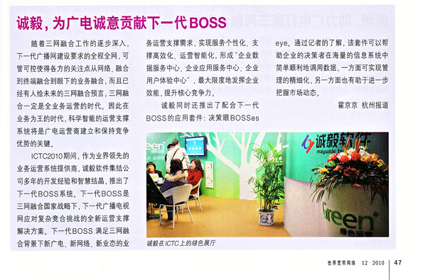 誠毅,為廣電誠意貢獻下一代BOSS——ICTC2010《世界寬帶網(wǎng)絡》專訪誠毅軟件總經(jīng)理邵山先生
